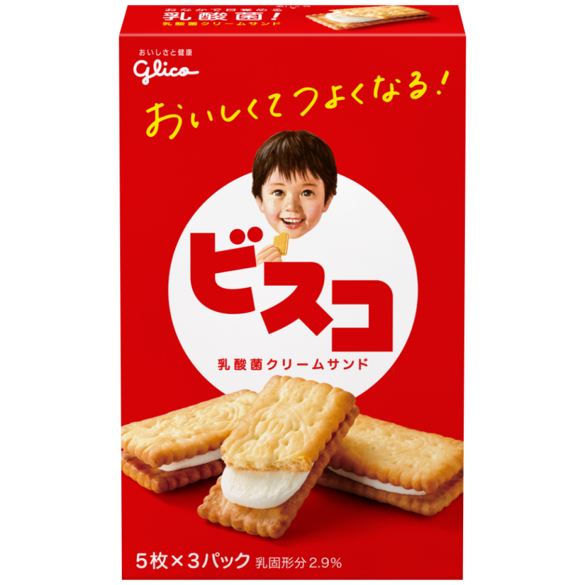 A legendary Japanese sandwich biscuit that has been loved since 1933. It features two light, crispy, and slightly savory crackers sandwiched with a smooth, mildly sweet cream filling. What makes Bisco unique is its health focus—it is formulated with spore-forming lactic acid bacteria (that survives in the stomach) and added vitamins, making it a "guilt-free" treat for both kids and adults.