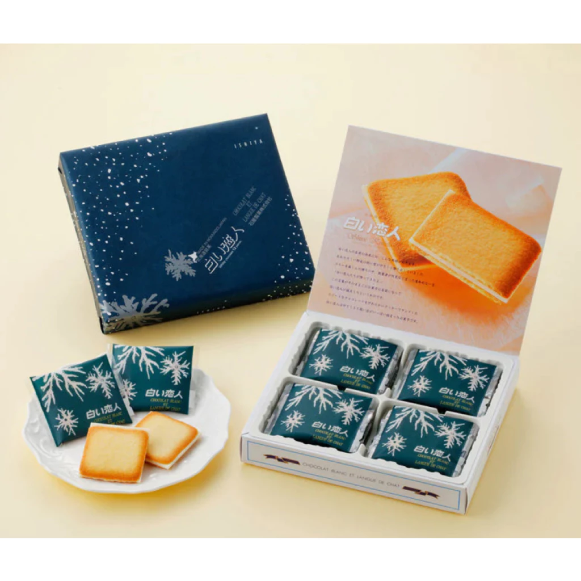The famous Shiroi Koibito cookies from Hokkaido, Japan — delicate butter biscuits filled with smooth, rich white chocolate. A premium Japanese gift choice that combines crisp texture with creamy sweetness.