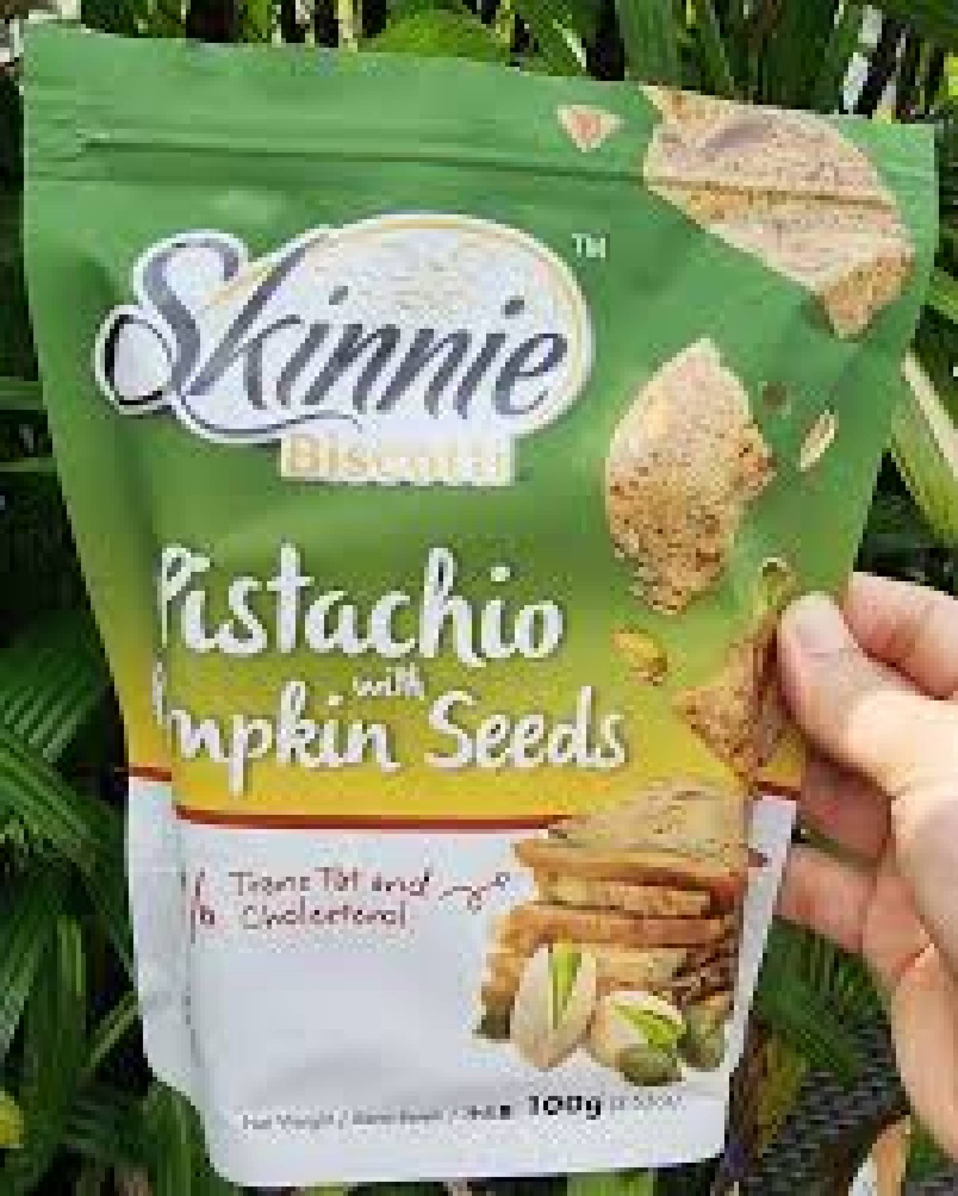 A modern, innovative twist on the traditional Italian biscuit. True to its name "SKINNIE," these are thinly sliced biscotti, offering a lighter, crispier, and more delicate texture compared to the rock-hard traditional version. This specific flavor blends the earthy, slightly bitter notes of Matcha (Green Tea) with the nutty crunch of roasted almonds, creating a sophisticated tea-time snack.