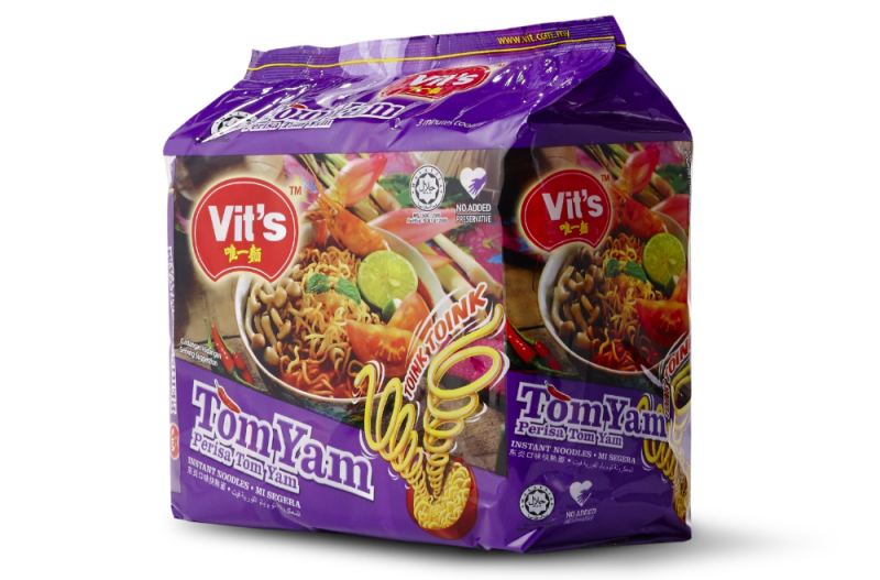 Uses Vit's famous highly elastic and chewy noodles that don't turn soggy easily, offering a great bite.
