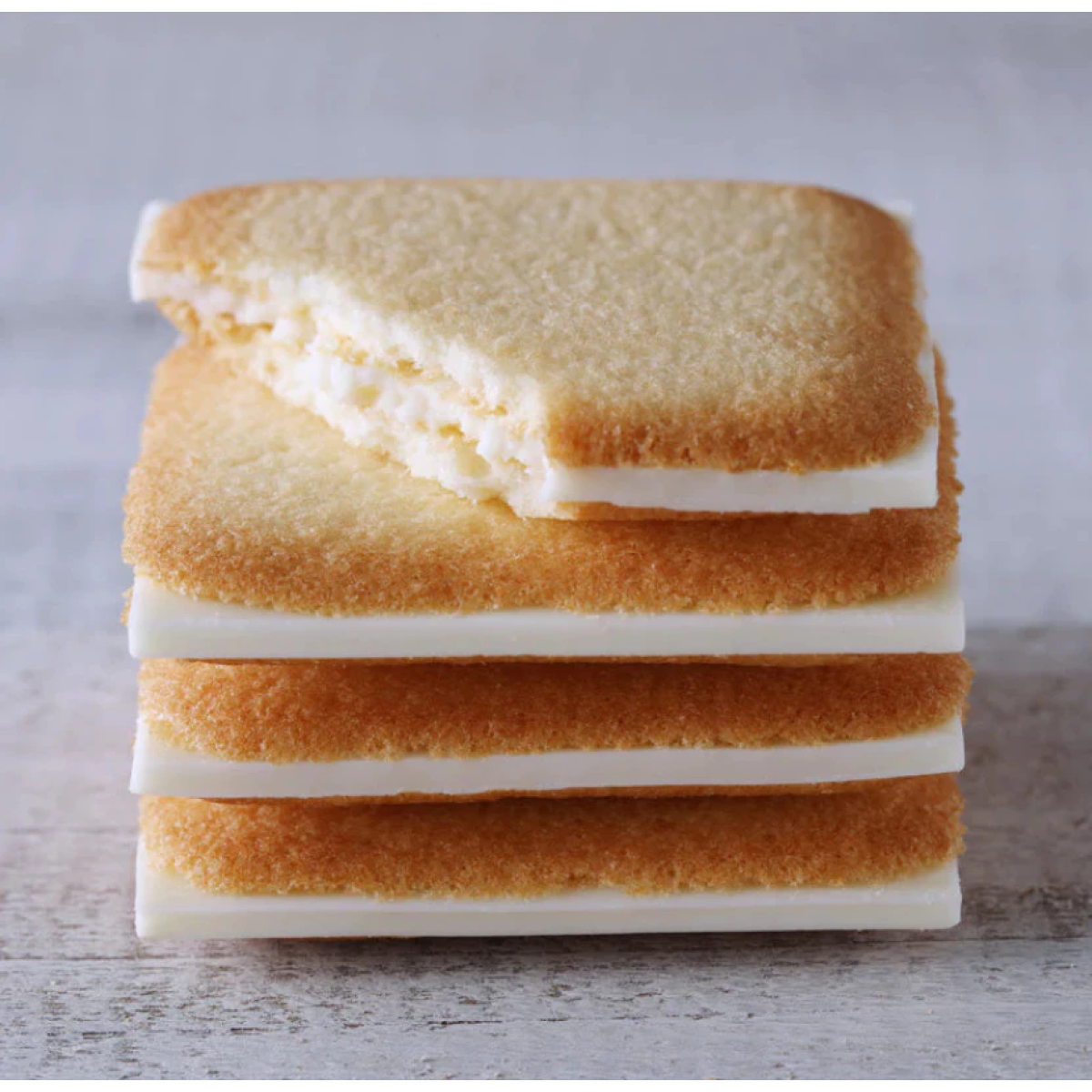 The famous Shiroi Koibito cookies from Hokkaido, Japan — delicate butter biscuits filled with smooth, rich white chocolate. A premium Japanese gift choice that combines crisp texture with creamy sweetness.
