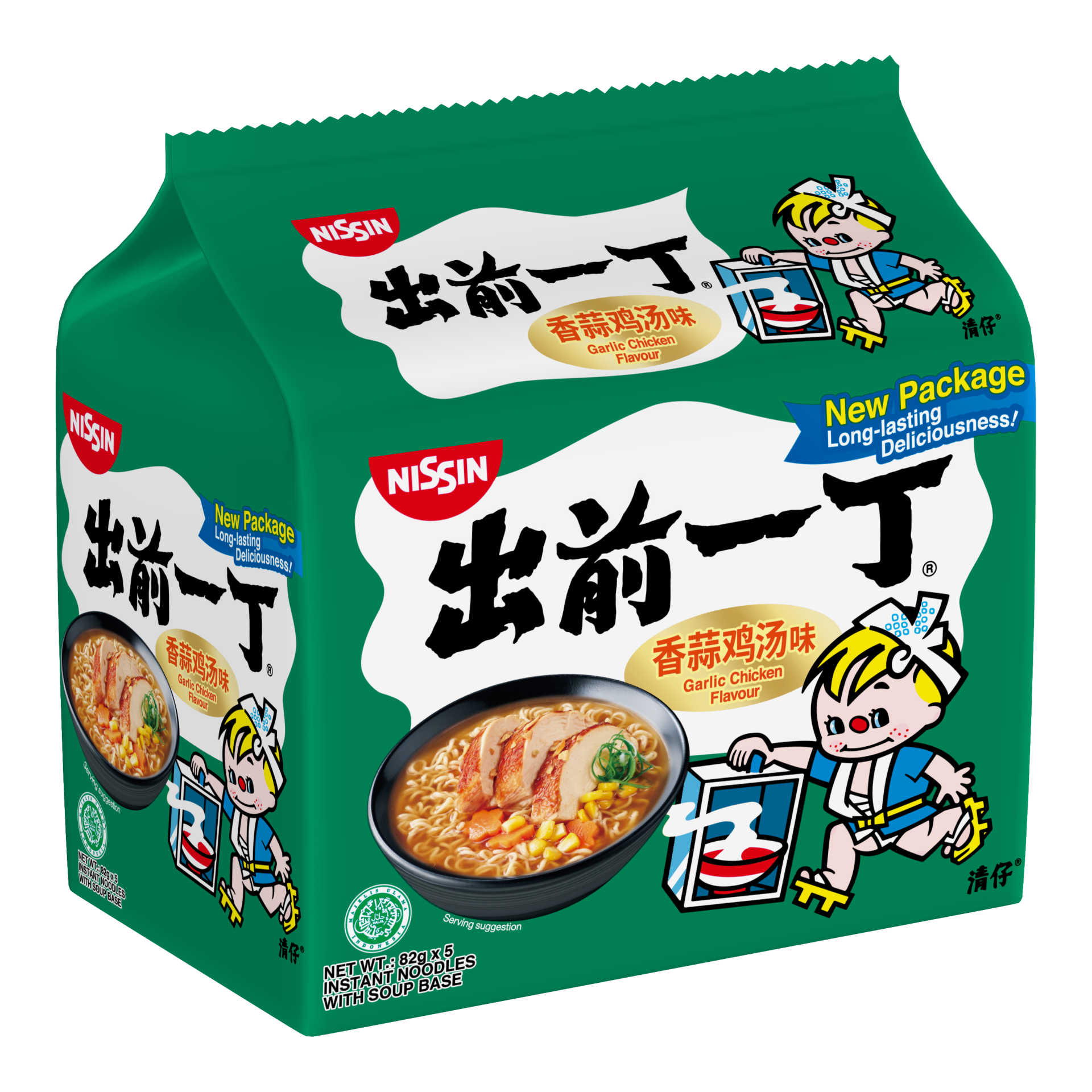 A savory twist on the classic "Demae Iccho" Chicken noodle. This variant takes the signature clear chicken soup base and enhances it with a robust garlic seasoning oil. It offers a comforting, aromatic broth that is more flavorful than the standard chicken version, paired with Nissin's famous springy wheat noodles.